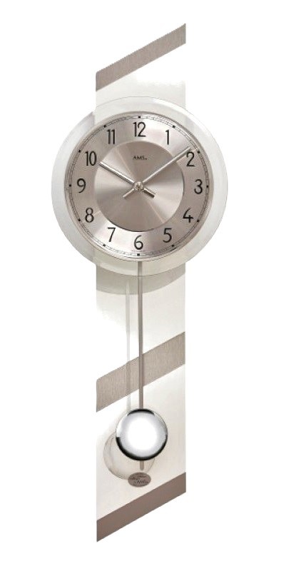 De rvs/witte wandklok heeft een glazen wijzerplaat met matzilveren wijzerplaat. Aan het Duitse quartz uurwerk hangt een verchroomde slinger. Inclusief gratis penlite batterij.